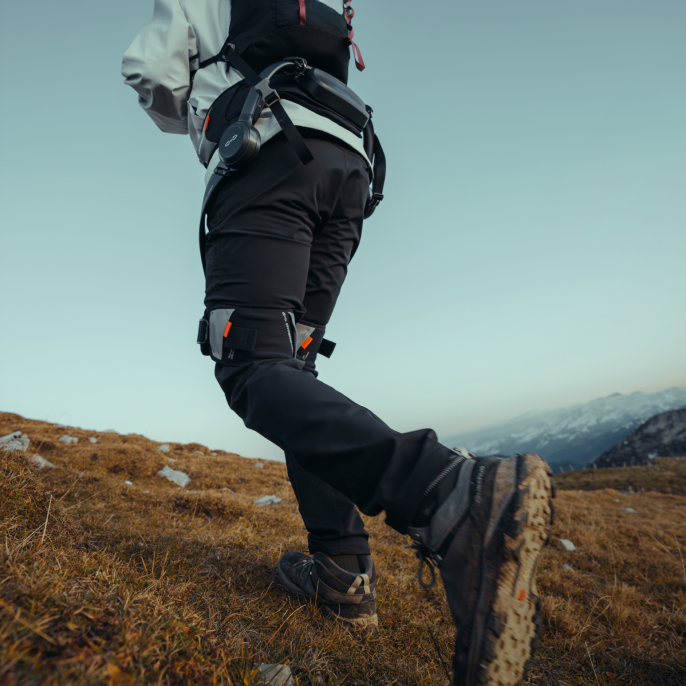 Going downhill often means pounding your knees. Hypershell X absorbs part of that impact, reducing the stress your joints experience. Think of it as a high-tech, continuous shock absorber built into your legs. Trekking poles help, but this support is constant, adaptive, and effortless.